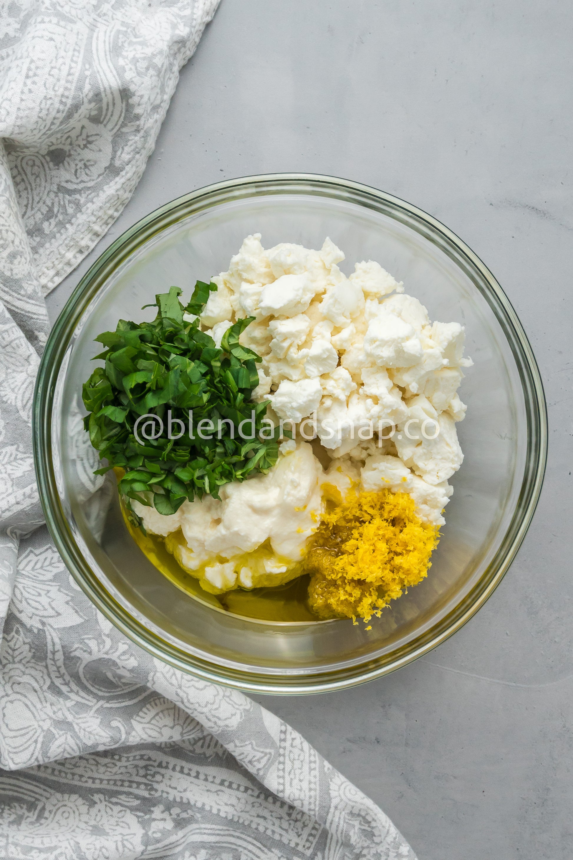 Featured Ingredients: Goat Cheese, Ricotta, Lemon Zest, Basil, Red Onion, Balsamic Glaze