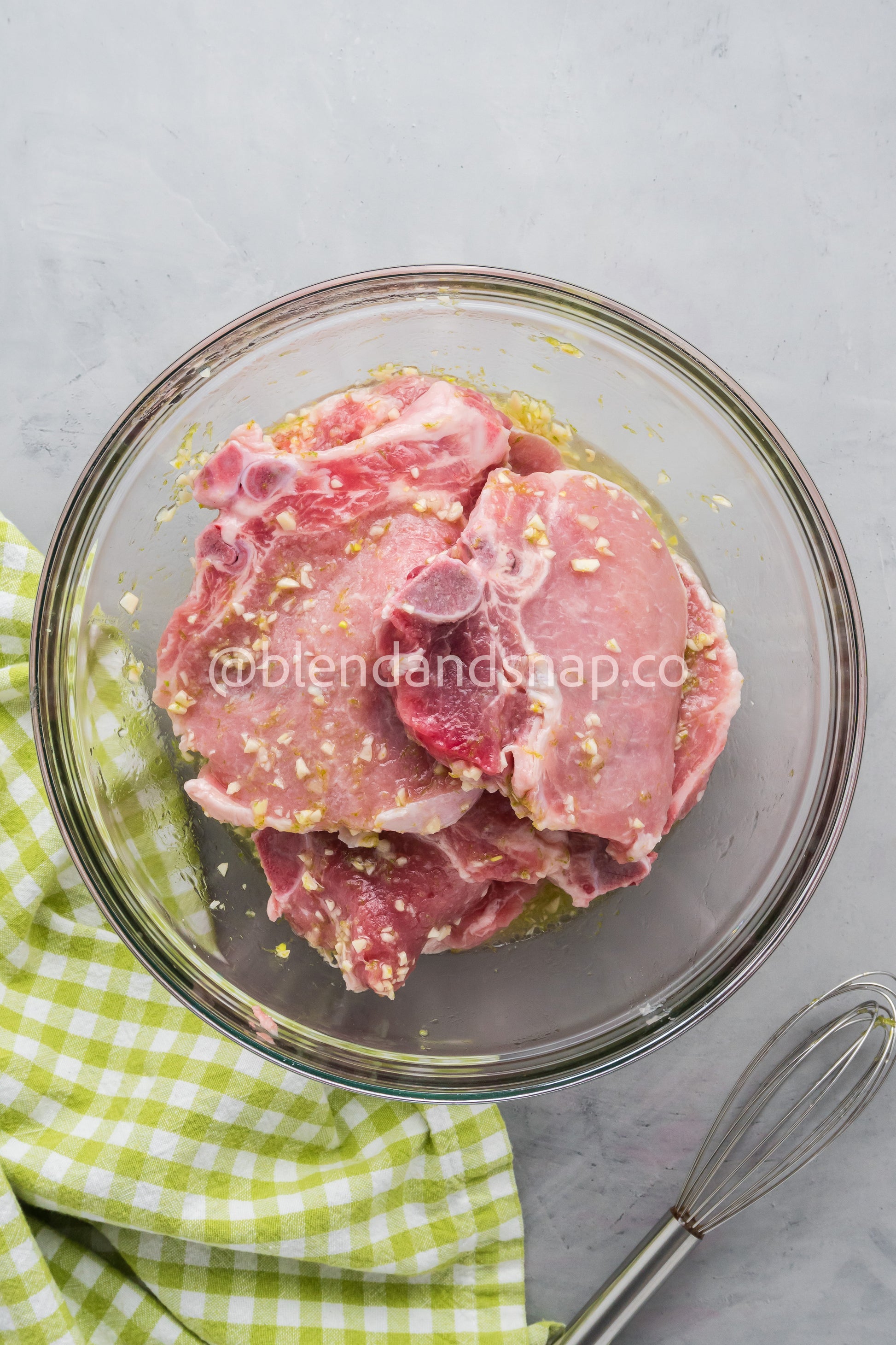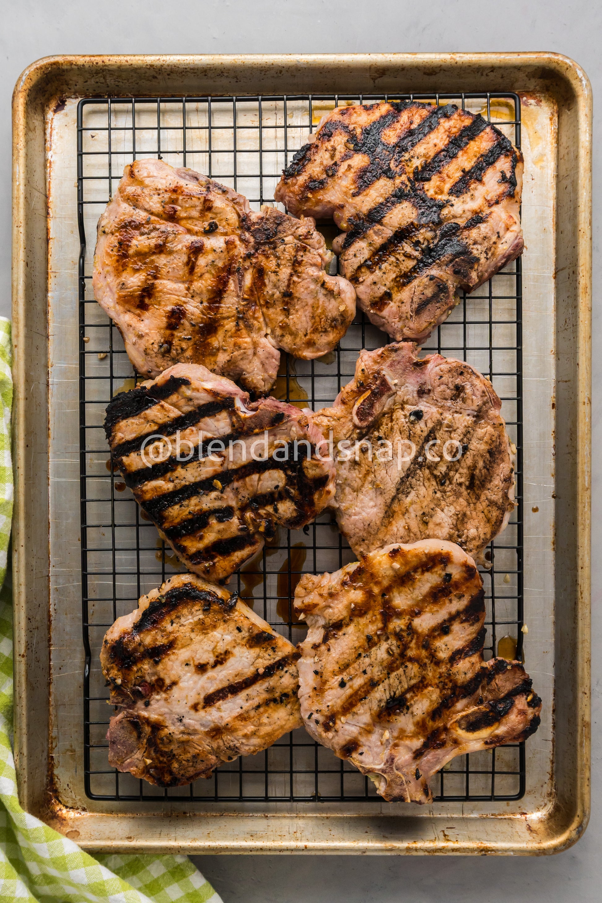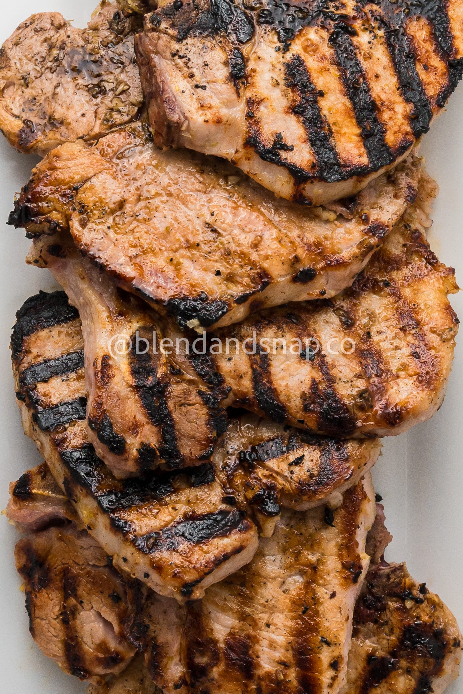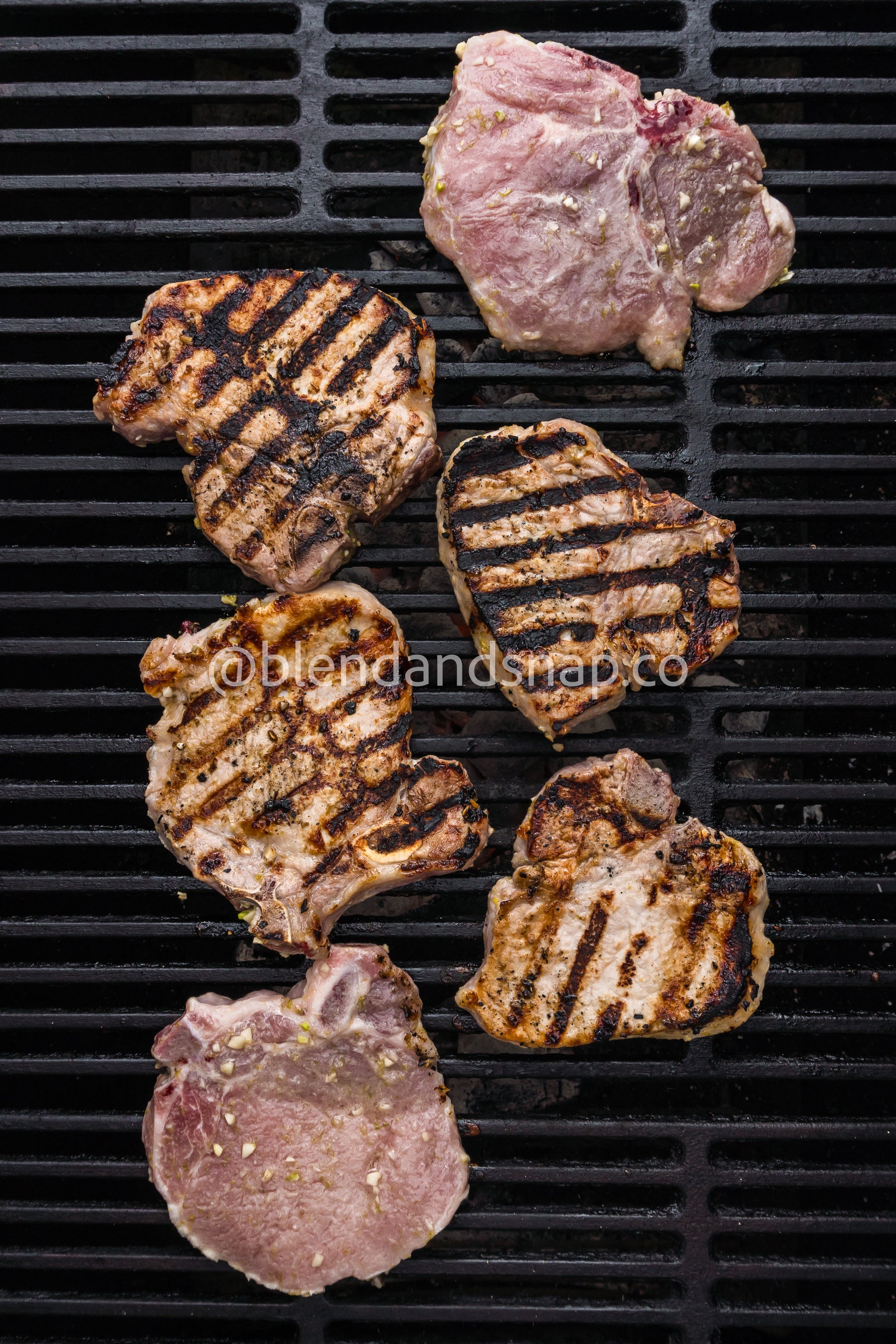 Featured Ingredients for Grilled Pork Chops with Mango Salsa: Bone-in Pork Chops, Lime Juice, Lime Zest, Garlic, Honey, Mango Habanero Salsa