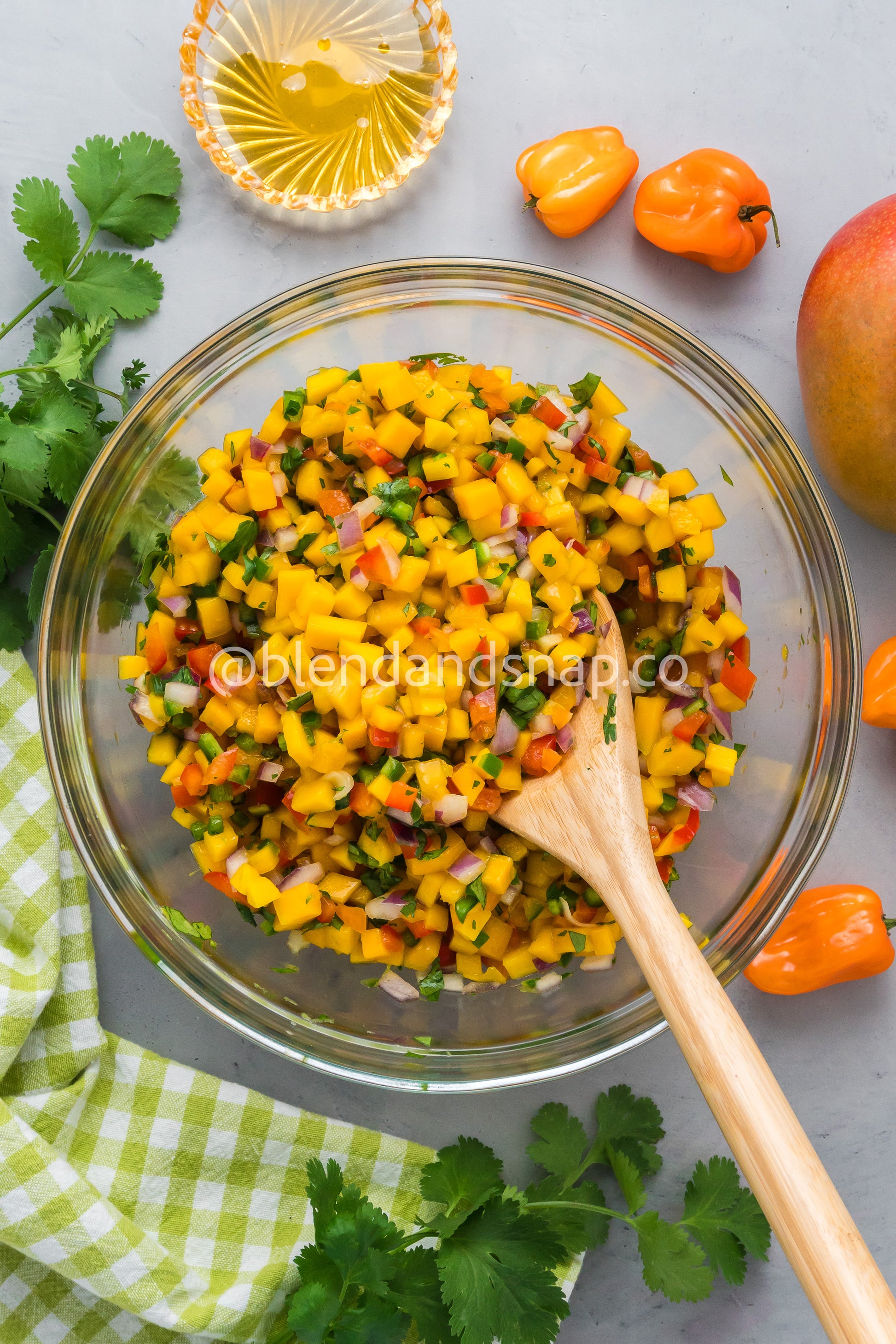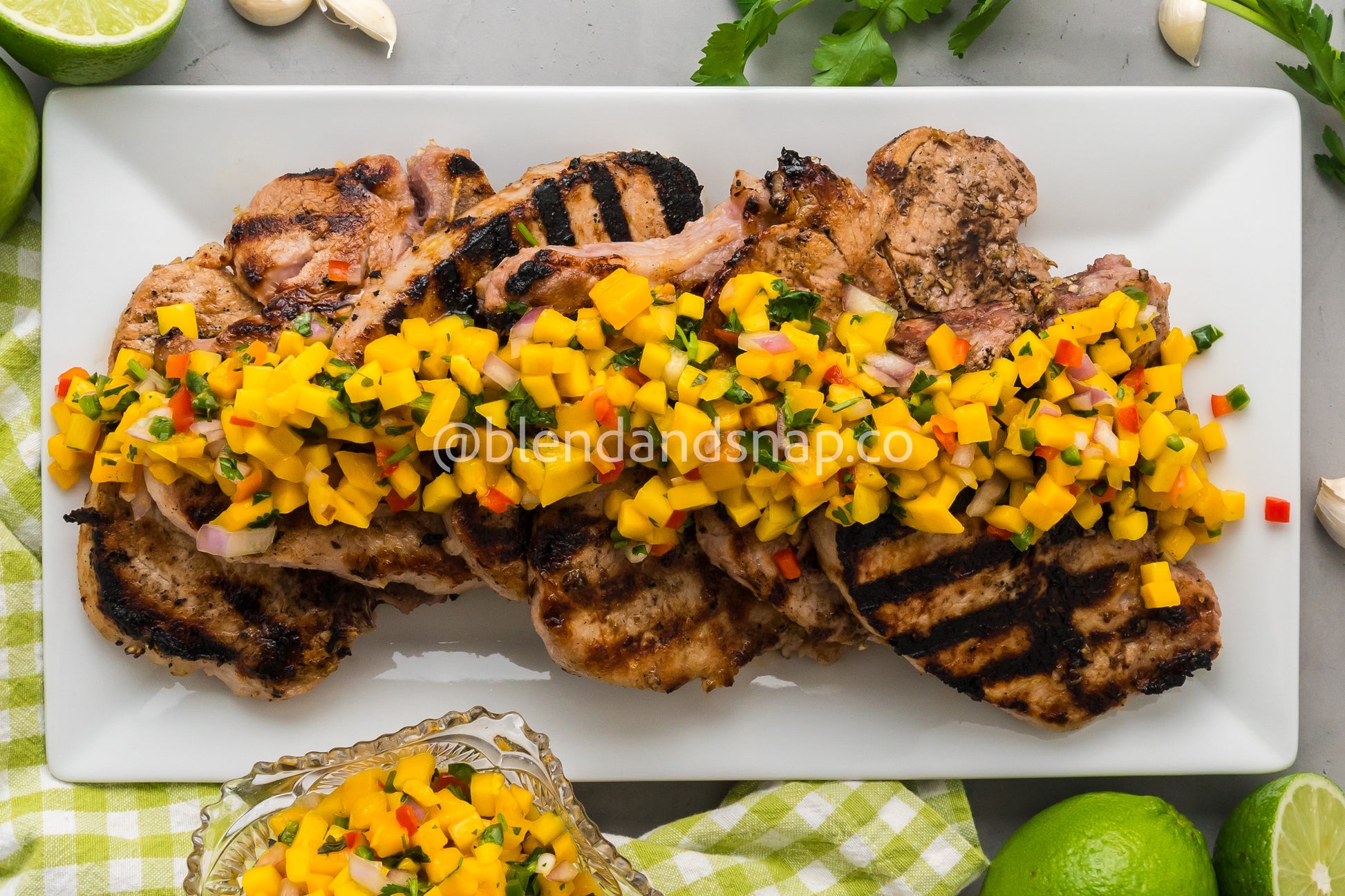 - All together, you will receive three separate PDF recipes: 1,400+ words of copy for the Fish Tacos with Mango Salsa, 1,000+ words of copy for the Grilled Pork Chops with Mango Salsa, and 890+ words of copy for the Mango Habanero Salsa; as well as the the high resolution photographs for each