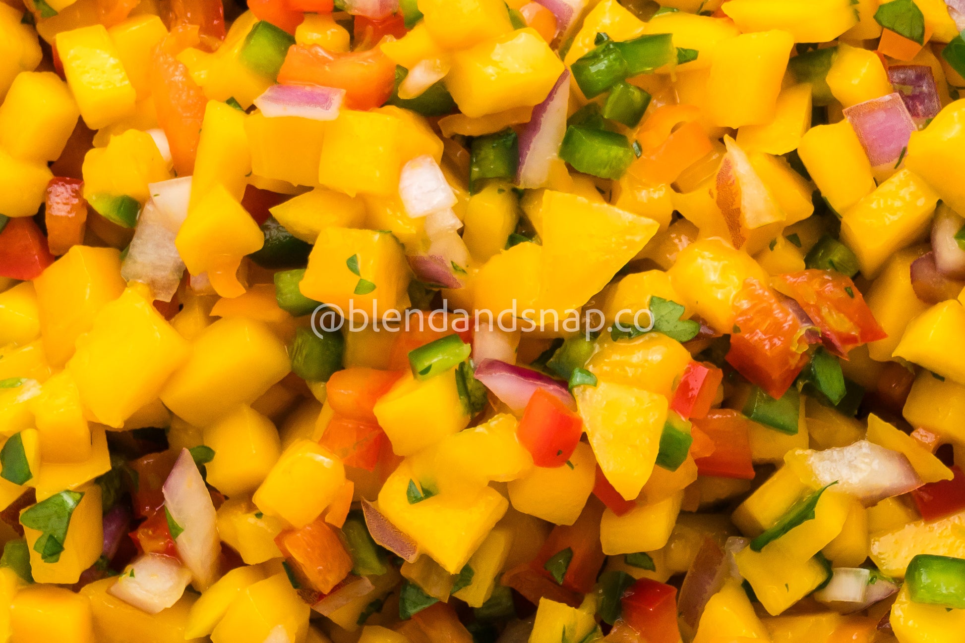 - High resolution photographs, including 1 ingredient shot in portrait for each of the three recipes, 7 process shots in portrait per recipe (including 5 "how to break down a mango" photos), and hero shots in both portrait and horizontal for all recipes: 23 heroes for the Mango Habanero Salsa, 21 heroes for the Grilled Pork Chops with Mango Salsa, and 17 heroes for the Fish Tacos with Mango Salsa.